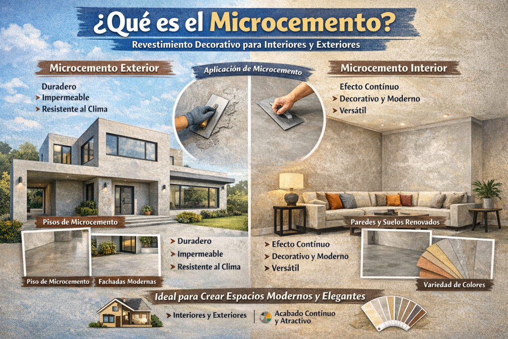 El microcemento es un revestimiento continuo de alta resistencia y gran versatilidad, aplicable sobre suelos, paredes y techos, tanto en interiores como exteriores. Actualmente se prefiere frente al estuco por su acabado más moderno, su impermeabilidad y su facilidad para aplicarlo sobre casi cualquier superficie sin necesidad de obras mayores. Permite acabados lisos, elegantes y personalizables, adaptándose a cualquier estilo de decoración.